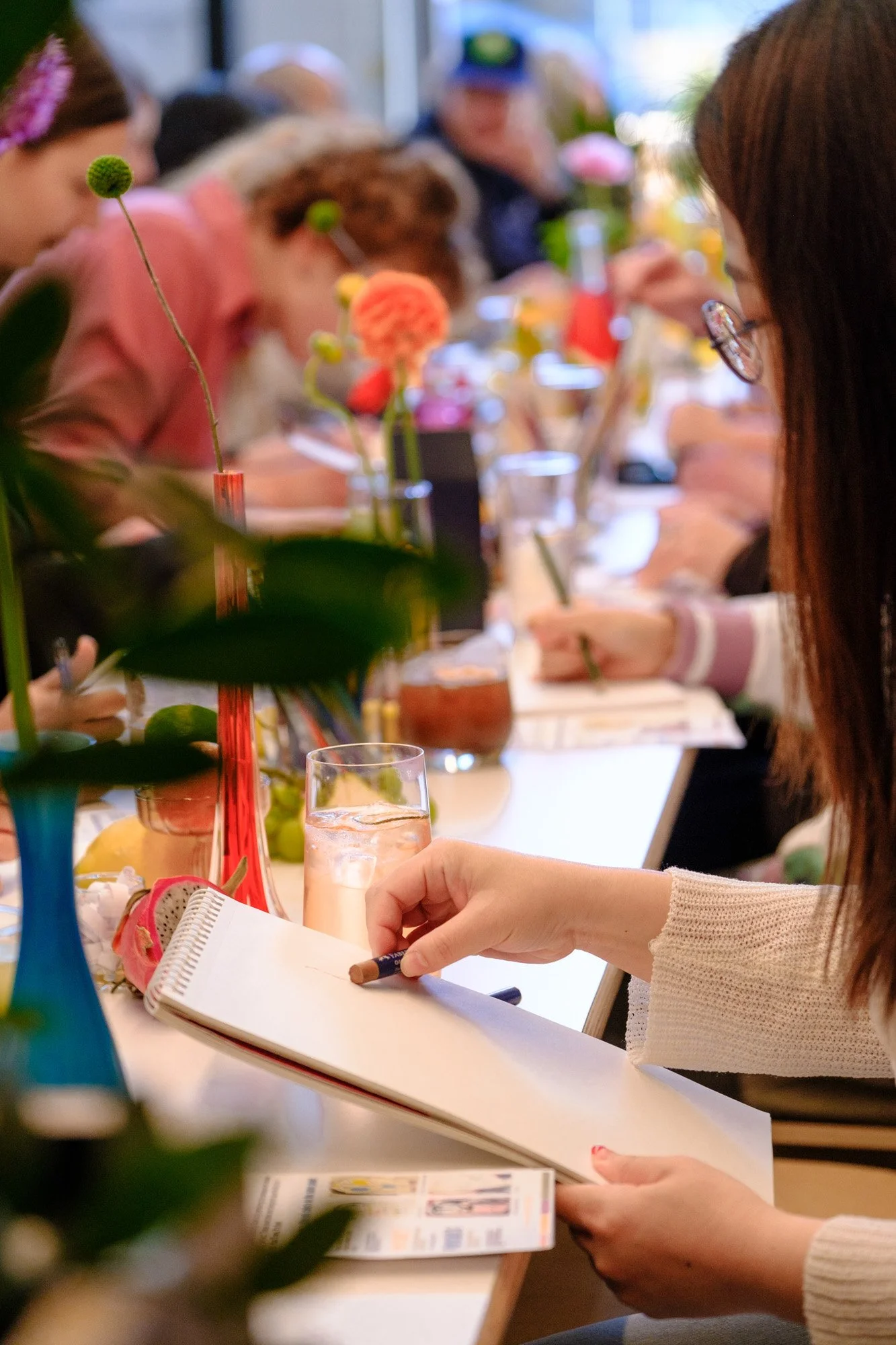 Come Draw With Me is a social drawing event centered around still life compositions. These sessions are designed to be interactive and community-focused, encouraging participants to engage with each other and share their artistic journeys.